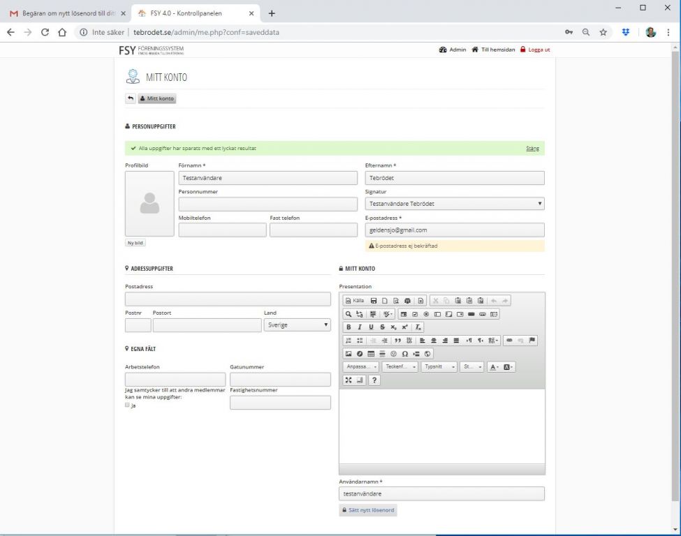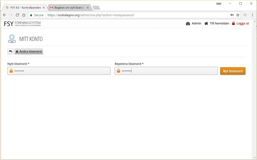 Ka-tjing! Lösenordet är byt till ditt nya. Passa gärna på att uppdatera dina uppgifter om de är felaktiga eller saknas.