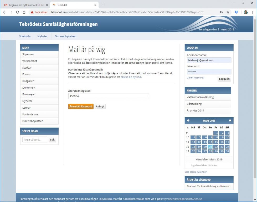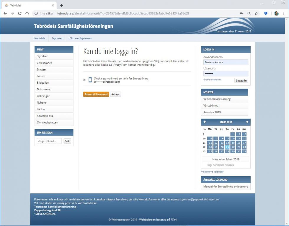 Välkommen till Tebrödets Samfällighetsförening och funktionen för att återställa ditt lösenord.