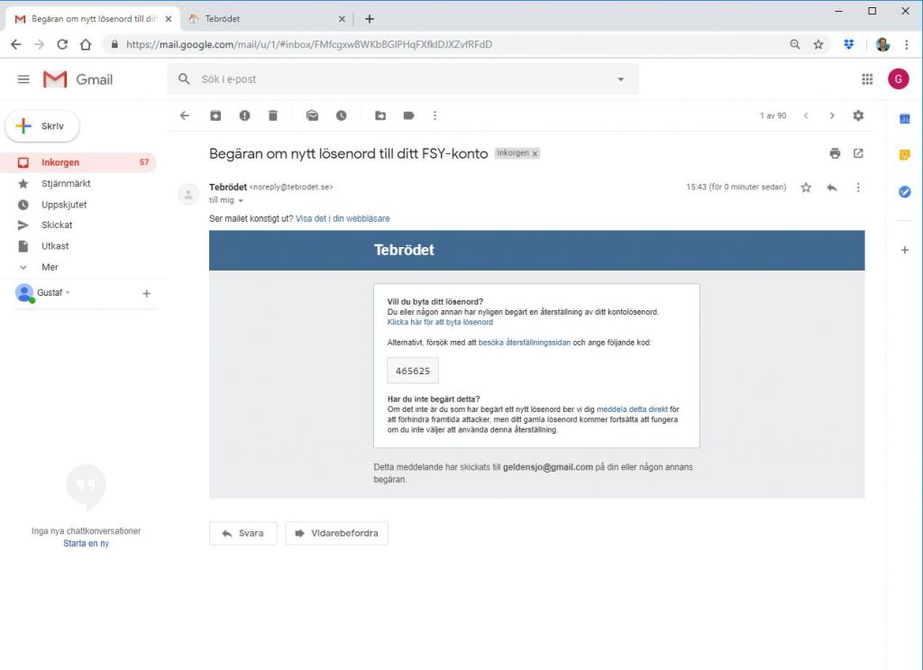 Verkar e-posten vara den rätta (du ser bara delar av den), klicka på Återställ lösenord